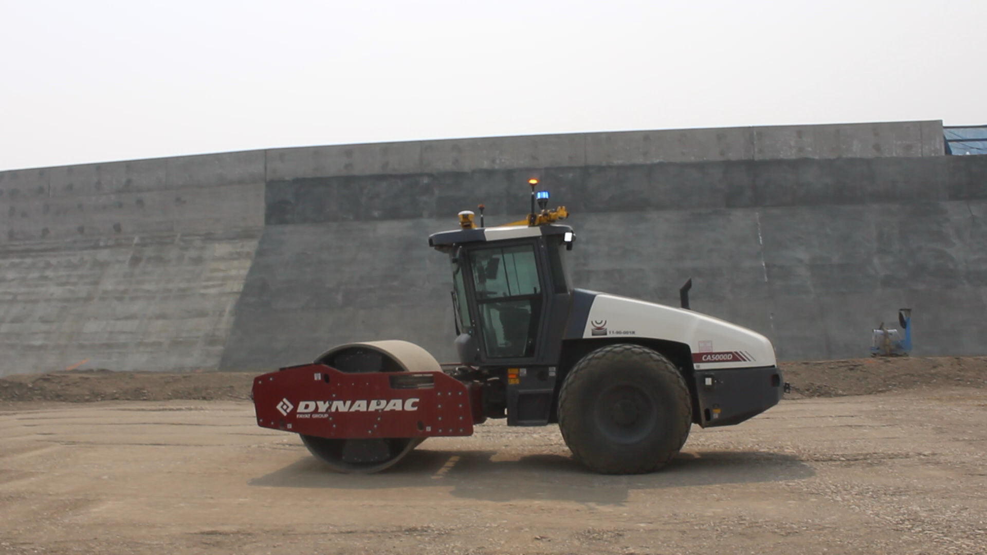 The job is for the construction of an earth covered dam and the Dynapac compactor was used alongside conventional machines guided by operators to carry out the work. Trimble technology used in all of the soil compactors ensuring they worked as a team, covering the entire area efficiently.