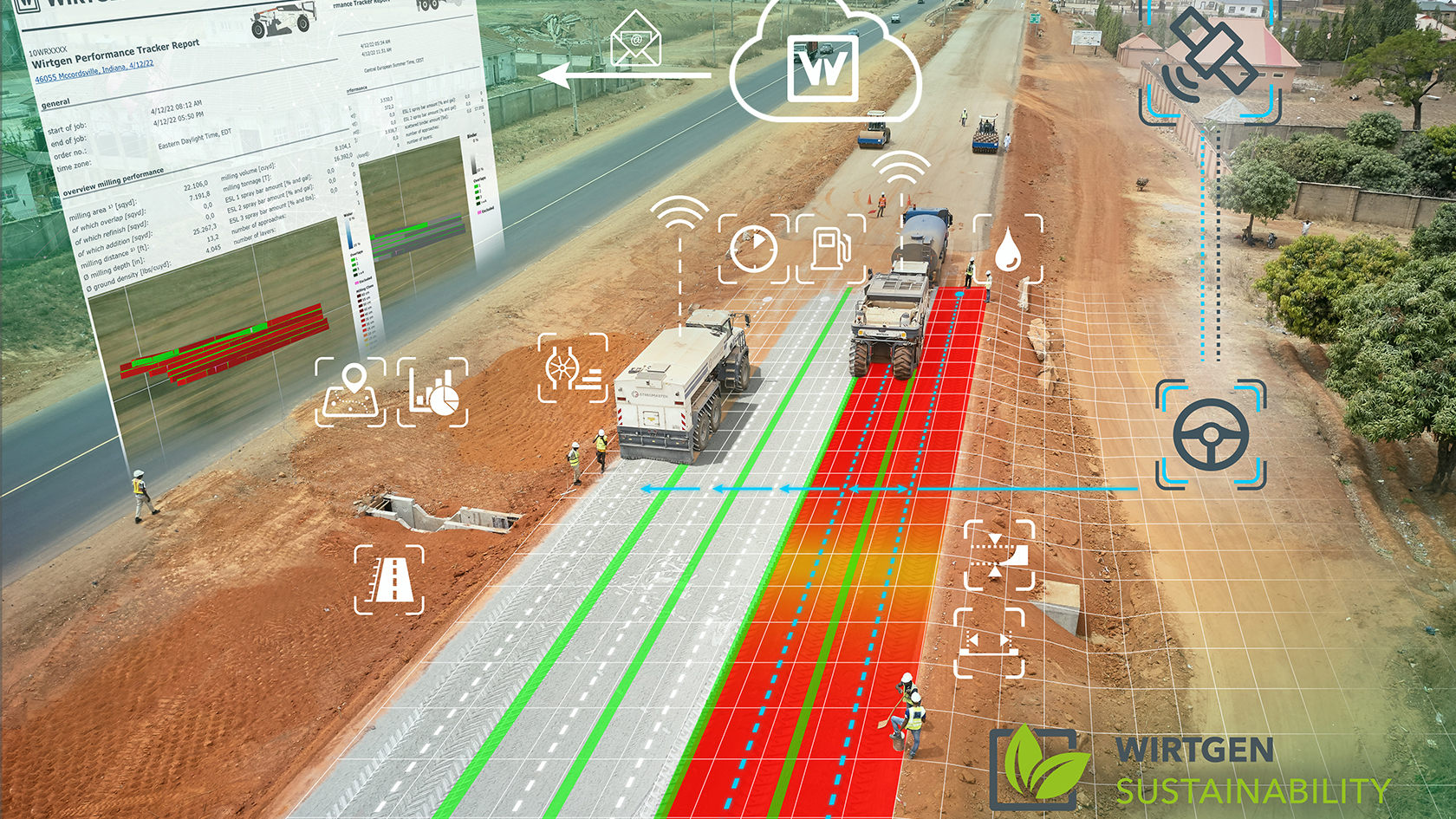 The WR-series machines are also available with the Wirtgen Performance Tracker. The system registers location-specific working parameters to provide a database for site analysis and documentation. For soil stabilisers, data includes working width and depth, area and distance worked and fuel consumption.